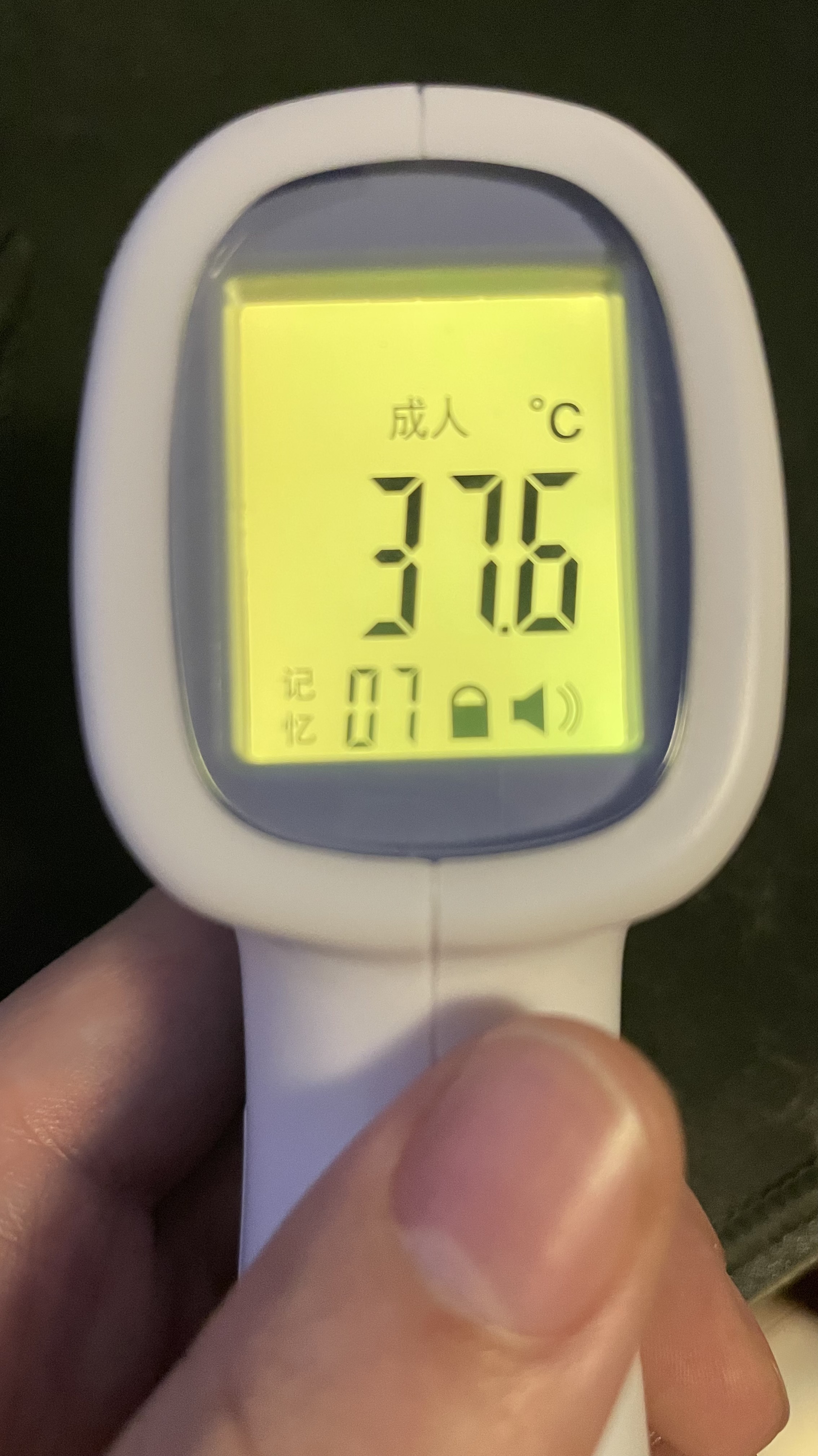 对了,还没说我买的额温枪呢。实话说我一开始特别怀疑这玩意的准确度,因为中午拿到之后我就测了好几次,那会身体明明感觉到还有一点烧,但是一直都只能测出来 36 度 5、36 度 8。直到刚才 (20:54),我明显感觉到体温又上来之后,才测出来个 37 度 6,而且这还夹杂在一堆 37 度整、36 度 8 之间。果然还是得整个水银的才靠谱啊。