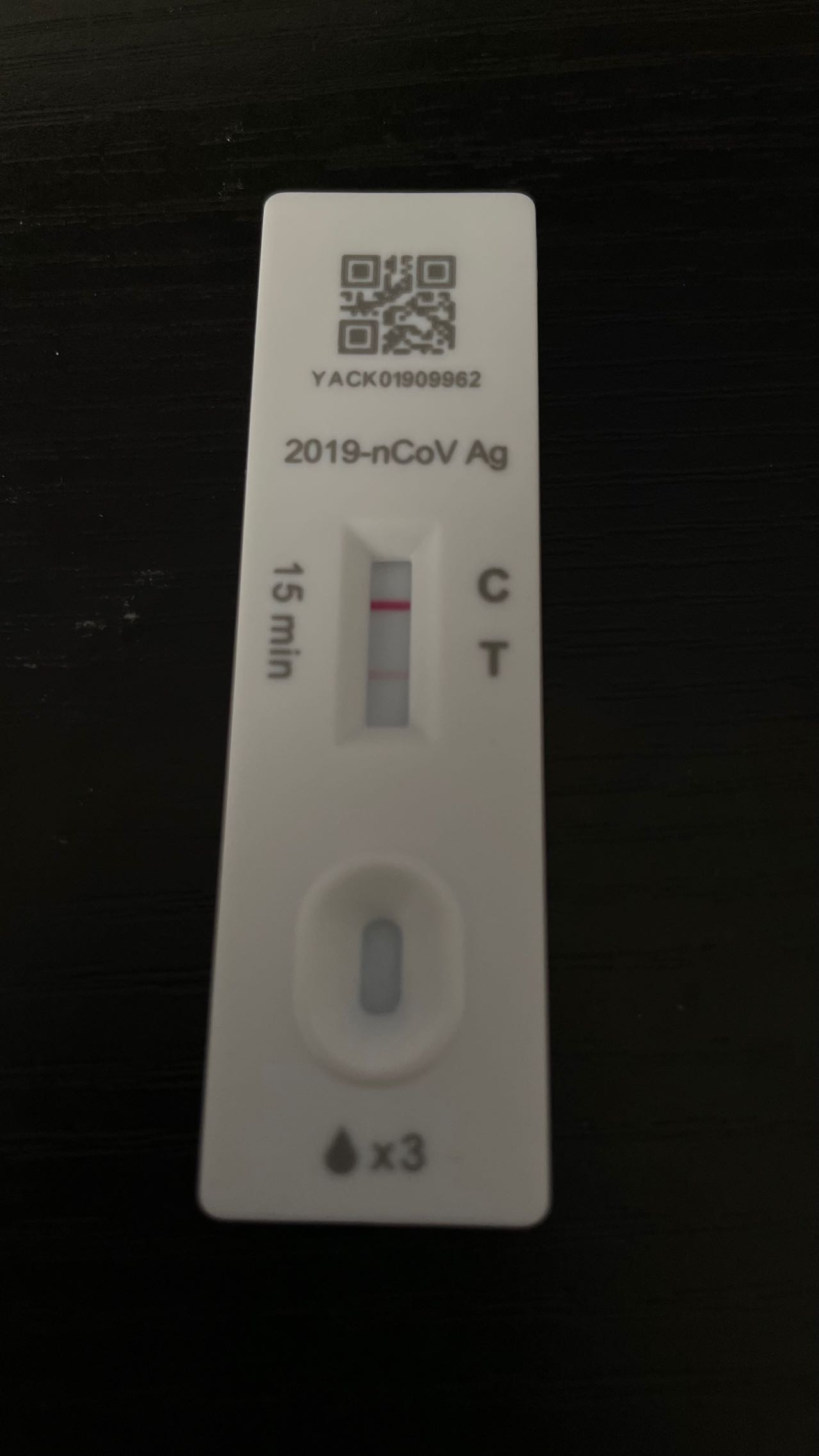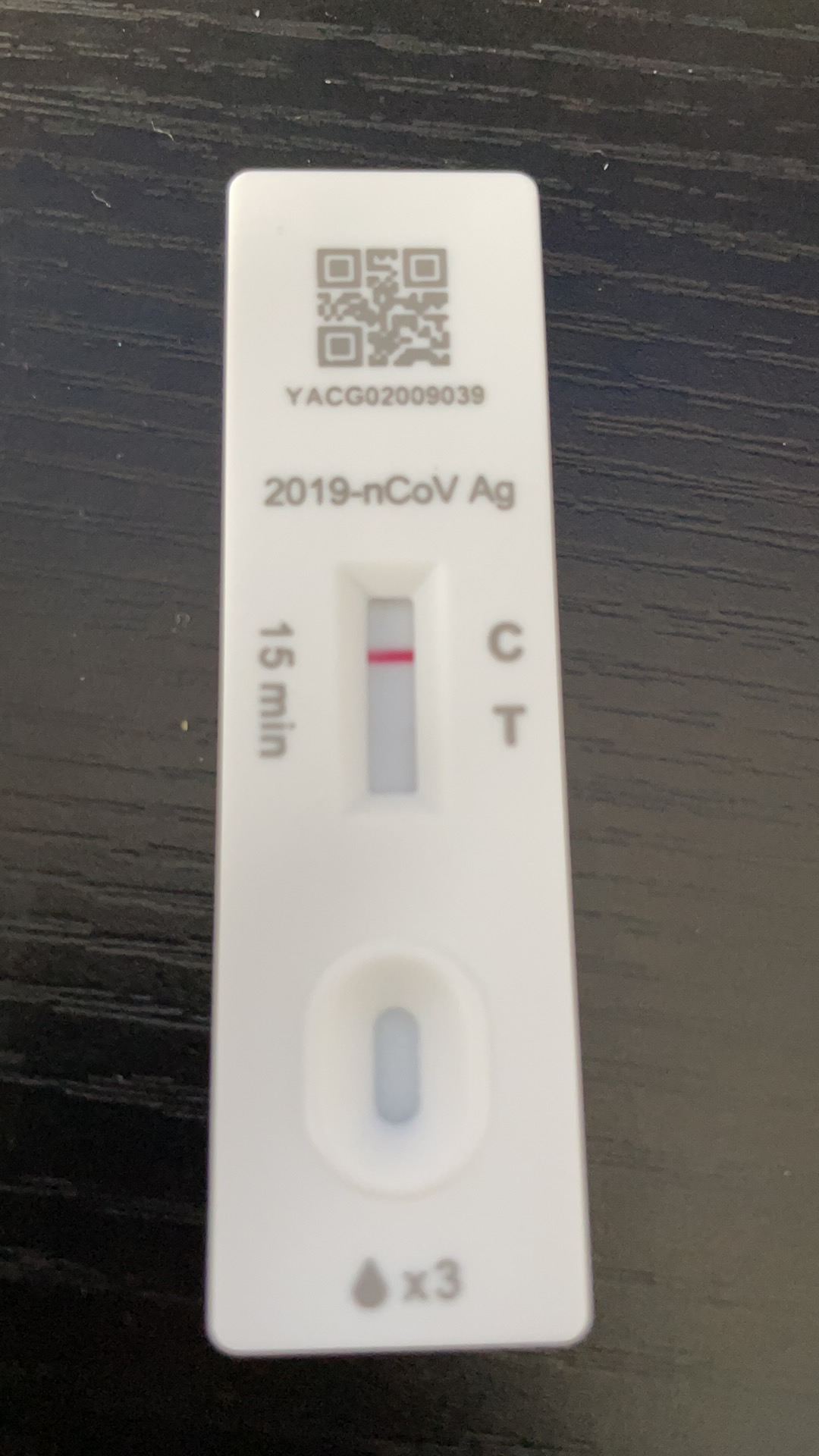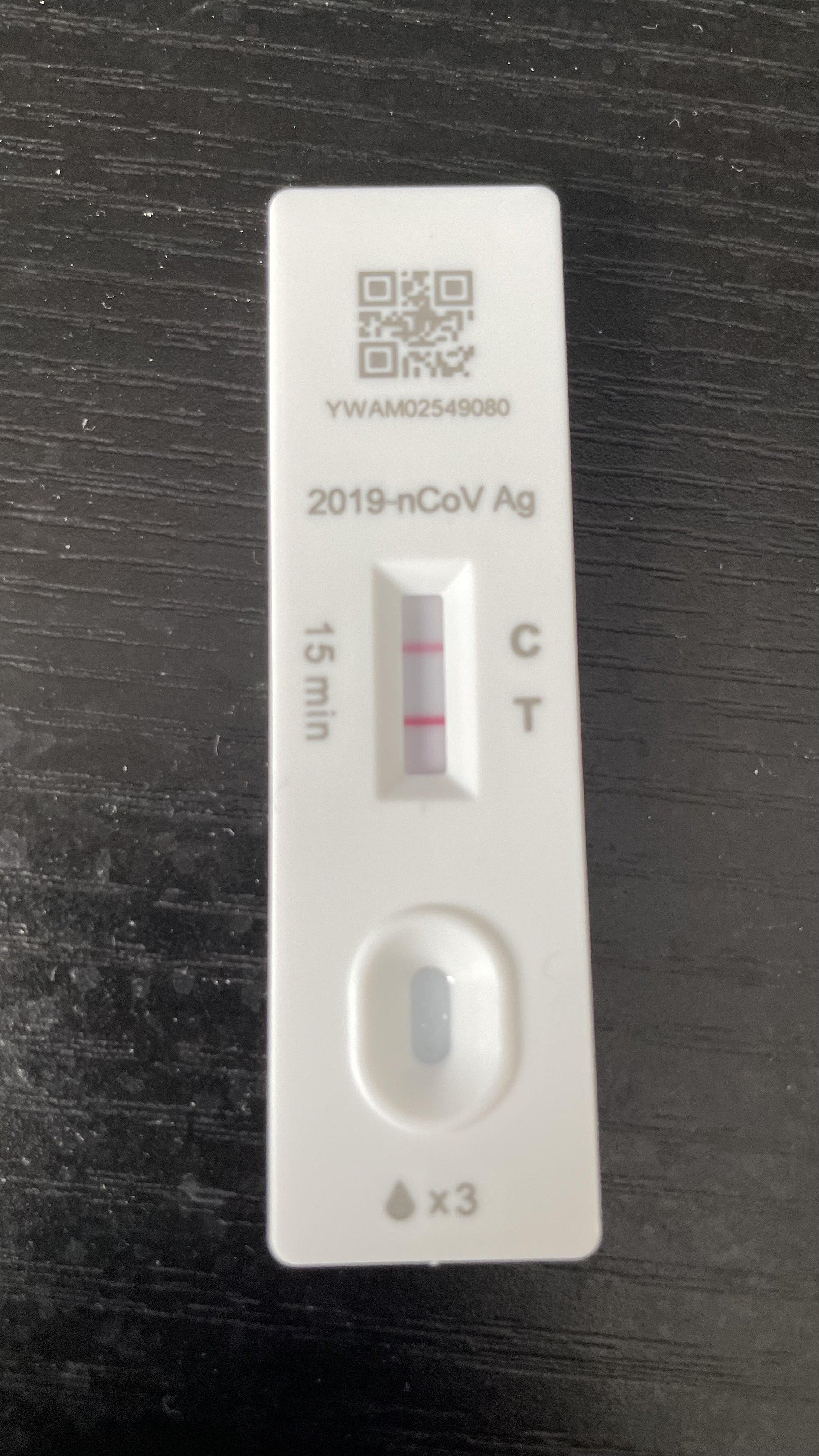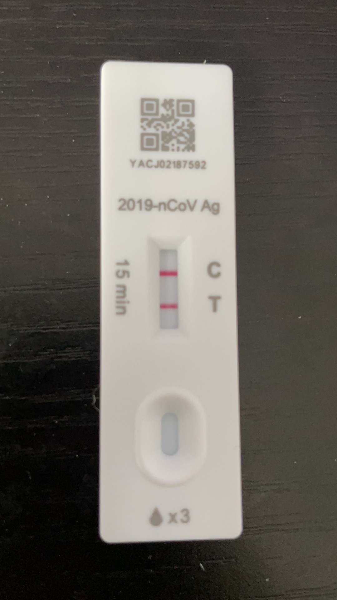 忘了是中午还是下午,顺便又做了个自测,这次变成强阳性了,T 这一杠红的甚是晃眼。