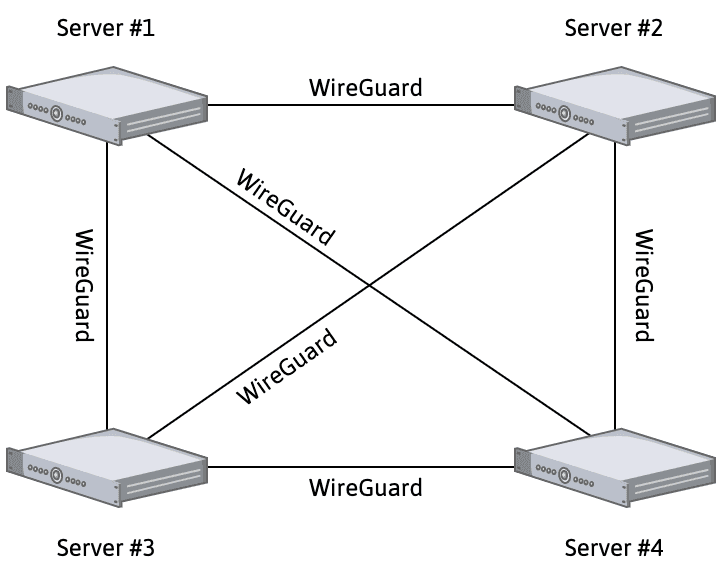 但是 Mesh VPN 提出了一种全新的拓扑结构,这种结构中每个节点之间都相互连接,不再存在中心的 VPN 服务器。