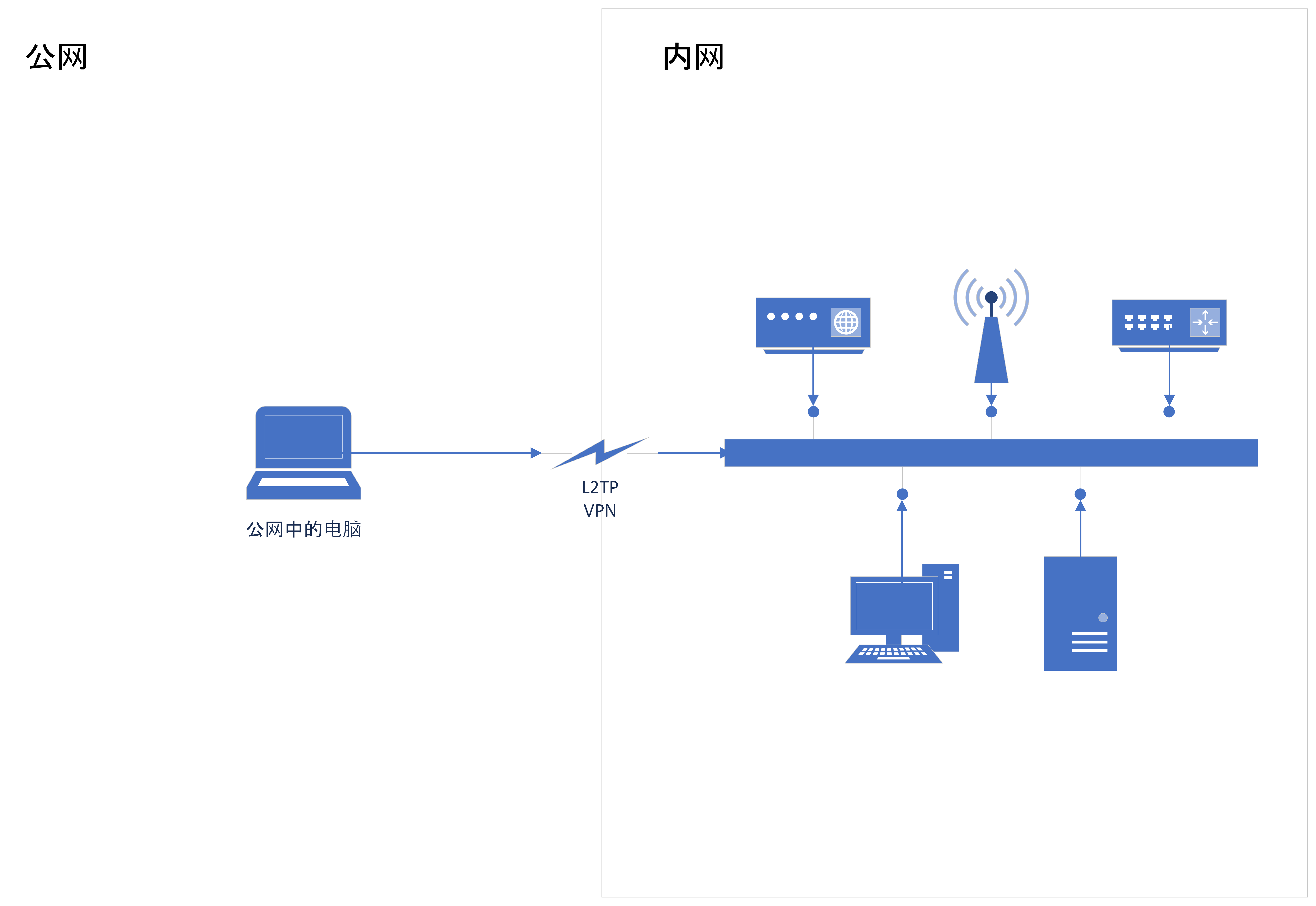 经典的 VPN 是作为一个网关,让外网用户通过它来访问内网。比如传统的 L2TP VPN: