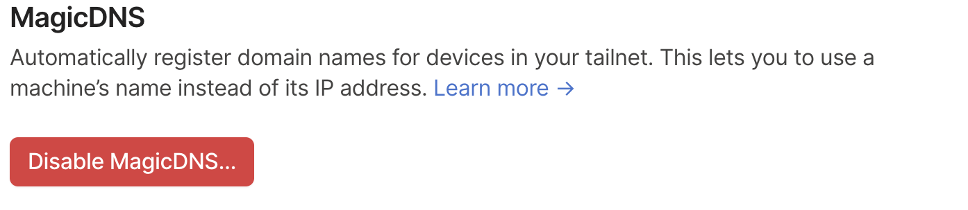 然后,在Magic DNS栏目下面点Enable Magic DNS就可以了。